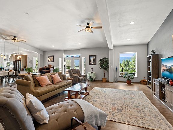 Enjoy luxurious country living with over 2,800 sq.ft. of finished space plus and additional 2,400 sq.ft. with multifamily potential. This stunning home offers 3 bedrooms, 2.5 baths, 2 laundry rooms, vaulted ceilings, and a spacious bonus room with a slider to a private deck. The chef's kitchen features double ovens, custom cabinetry, a large pantry, and a 3-zone on-demand hot water system. Set on 2 usable acres with breathtaking mountain views, this property includes ductless heating and air, an attached garage with updated finishes, and covered RV parking with full hookups. A perfect blend of comfort, space, and flexibility for extended living or rental income possibilities.