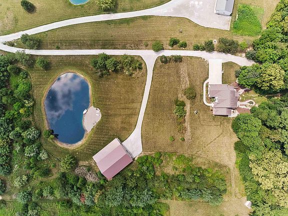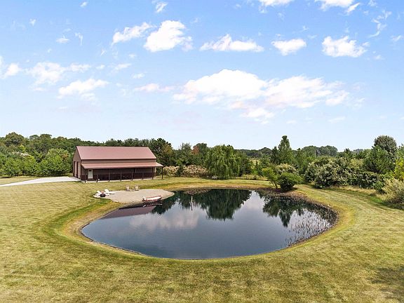 WELCOME HOME! You won't want to miss out on this beautiful home on over 5 acres, with a breath taking view. As you pull in you'll notice trees at the road, which gives you lots of privacy! As you pull up the driveway, you'll see the beautiful pond and a large pole building with a covered porch to sit and relax by the pond! There is a large wooded area, around back you'll find a trail that takes you through the woods to the creek. In the woods you'll find a shed and a clearing with a fire pit, to relax and enjoy nature! Inside you'll find a gorgeous well maintained home! The main floor features a large living room, a nice eat in kitchen, a large separate dining room, there's also a half bath and a large laundry room. The large main floor master suite features a large walk in closet and a large master bath. The large master bath has a stand up shower, with a nice soaking tub, and a large sink area with lots of counter space. Off the dining room is a really nice screened in 3 season room, with a nice deck off of that. You can sit out there and look into the woods. The view is amazing! Upstairs you'll find two more large bedrooms with nice closets, a full bath and an abundance of storage space. In the basement you'll find a nice nice game room, with plenty of storage space and another half bath. . The possibilities for the basement are endless! All appliances stay! If you've thought about moving to the country, now is your chance! This home has it all! This is a must see!! Some maintenance updates: Septic Pumped in 2020 TruGreen will fertilize lawn until October Terminex Pest control comes quarterly Pond Champs to take care of pond until September, they come every two weeks Kitchen stove has Also has gas hookup, but is currently electric Refrigerator 2 years old Washer and dryer 3 years old Stove 8 years old Pole barn built in 2020 There are hookups for a hot tub. Geothermal Furnace/Air checked in 2023
