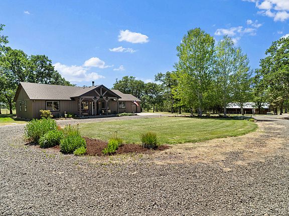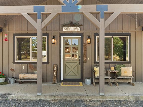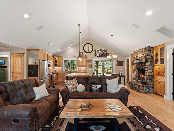 This well-maintained 5.3 acres is fully fenced, with a private drive and gated entry. It comes with a climate-controlled dream shop/extra garage space, full RV hookups, a large barn and a well-appointed 3 bed 2 bath home! You are greeted with an open concept design including a cozy fireplace, vaulted ceilings, butcher block island with storage and lots of natural light. The primary suite features a walk-in closet and there is a large laundry/mudroom with sink from the attached garage. The covered patio, firepit, pool and hot tub all face the neighboring open space. Bonuses include fenced garden area, chicken coop, high producing well (per seller), and frequent elk sightings. True pride of ownership, all just a short drive to town.