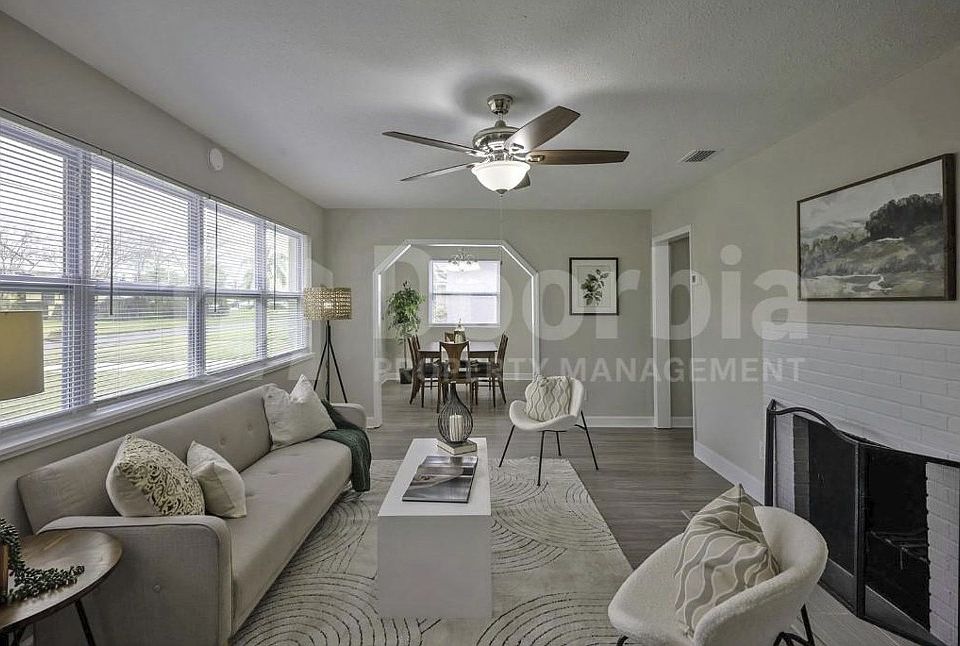 Welcome to this cozy and fully renovated 3-bedroom, 1-bathroom home that combines charm with stylish upgrades throughout. Step into the inviting living room featuring a ceiling fan and a stunning fireplace perfect for relaxing evenings.