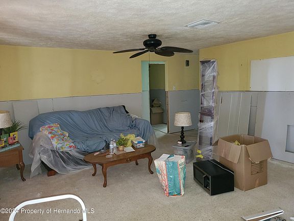 3 Bedroom 2 Bath 2 Car Garage Home in Hernando Beach. Home is a Fixer Upper from Previous Hurricane Damage. Interior Drywall Replacement has been started, but Seller decided to Sell and Let Someone Else Complete Renovations. All Cabinets, Appliances & Flooring has been Removed. Swimming Pool is Vinyl and Needs New Liner. Elevated Pool Equipment and Trane A/C System is Existing. Beautiful Landscaping with Concrete Curbing. Covered Pool Deck has Bar and there is a Patio with a Burn Pit. Large Side Yard with Room to park your Boat as the Boat ramp to Gulf of Mexico is Right Down the Road. Being Sold As Is.