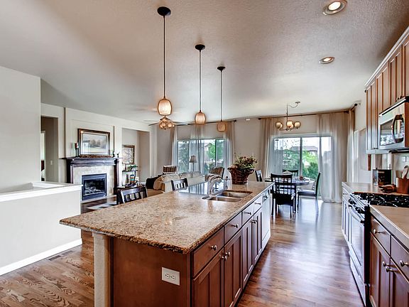 Unprecedented value in this Cordera ranch home. Open Floor Plan! Newly finished hardwood floors throughout main level. Granite counter tops, stone tile backsplash, updated pendant lighting, craftsman style cabinets w/ hardware, stainless steel appliances, and walk-in pantry! Great room features a gas fireplace and hand crafted wooden mantel made custom for this home. Large master suite features beautiful attached 5-piece bath w/ custom trimmed mirror, raised counter tops, & large walk-in closet! Main level features a large office/bedroom w/ french doors. Open basement plan features a second fireplace, 9 ft ceilings and a huge storage room. Central A/C. Backyard with beautiful stamped concrete patio with step down space for a hot tub. Just steps away from Corderas awards winning Charlottes Web Park. Clubhouse w/ pool, work out facilities, and conference rooms makes this a dream place to live.