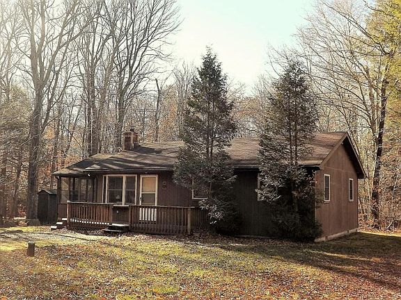 NO DEVELOPEMENT-NO DUES- This rancher sits on a wooded parcel and offers 3 bedrooms and 1 bath. Great Location just 2 miles off Route 80 and close to area amenities such as the ''Big Two'' Ski Areas, Pocono Raceway and more. Home is being sold furnished! Front deck, Screened Porch, Storage Shed, Wood Shed and U-shape drive are some of the exterior features. Inside we have a workhorse of a wood burner in the living room that keeps the home toasty!