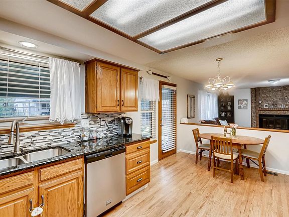 Beautiful well cared for home in Woodgate. This home is part of the Cherry Creek School District and features newly refinished hardwoods, new carpet, new roof. This home offers beautiful outdoor living space with a large yard and covered patio. The large eat in kitchen with granite counter tops flows well into the family room and dining room. The family room is warm and inviting with a large brick mantled gas fireplace as its focal point. Finished basement provides additional living space with a guest room and full bath. This is a wonderful opportunity that is close to everything.