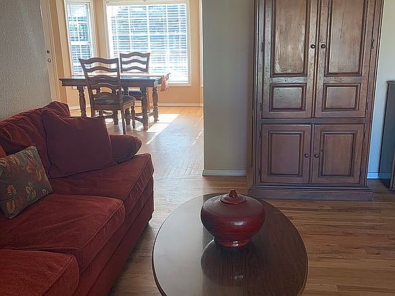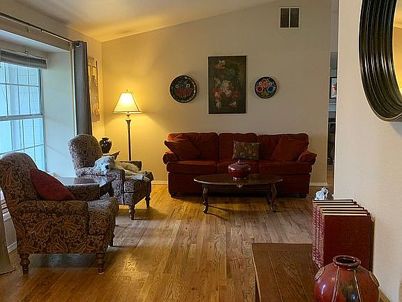 An established home that is still current in design. Bright and open. Vaulted ceilings and skylight. Hardwood floors. New exterior paint. Large backyard, garden space.