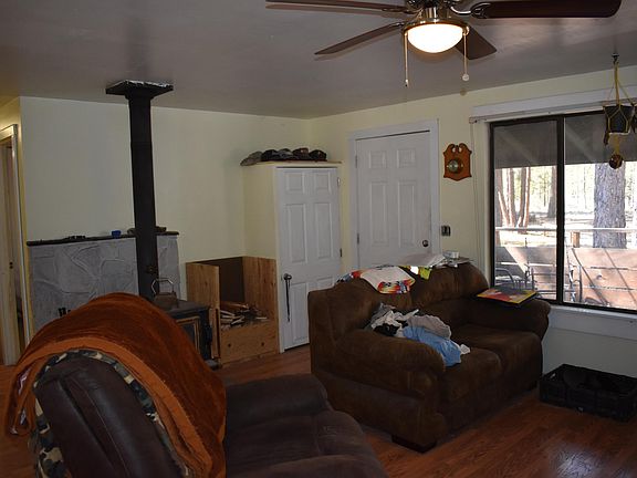 Tons of potential for this 3 Bedroom, 2 Bathroom 1300 + 576 additional sf home built in 1979 that sits on 5 beautifully forested and mostly fenced acres. Property is set up for horses, has circular driveway, 4 separate electric/water stations for RV parking in back, 2 frost free hose bibs in front, newer well (2022), and custom chicken coop. This property includes an older 2 story barn with horse stalls that include plumbed in troughs for water, workshop/storage, car pit and work area. Upstairs has private entry and could be used as additional living or storage space. With some TLC, this is a great opportunity to have a nice home on a large lot - come and see for yourself all of the possibilities this property can offer you!