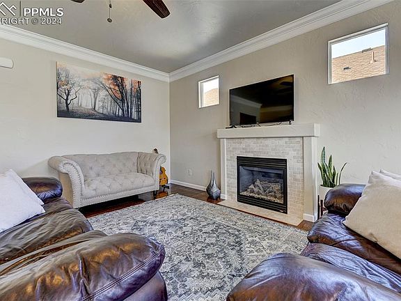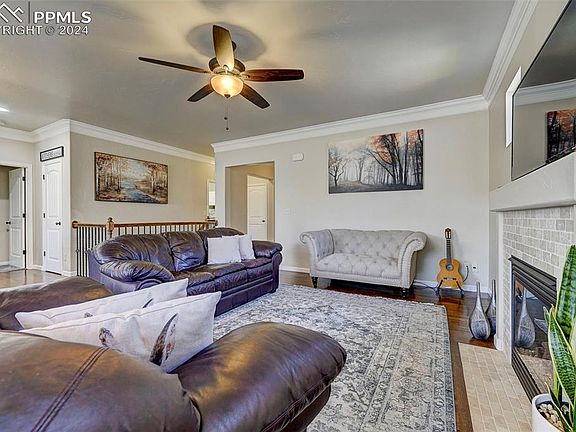 Welcome home to this carefully maintained 4 bed/3 full bath rancher located in coveted community of Cordera! This home has both exterior and interior upgrades including stucco and full landscaping. This home boasts 9-foot ceilings, crown molding, hardwood floors and a spacious kitchen. The main level includes a true open floor plan of the living room with its gas fireplace, the kitchen and dining areas. The kitchen includes granite counters, maple cabinets, stainless steel appliances (gas range/oven), and pantry. From the kitchen area, you can walk out to the backyard and enjoy the gorgeous summer nights! The main level also includes the primary suite with an adjoining 5-piece bath and spacious walk-in closet (new carpet). Also located on the main level are another bedroom/office (new carpet), a full bathroom, and a designated laundry area (washer/dryer included). The basement includes the family/recreation room, pre-wired for surround sound, two additional spacious bedrooms, another full bathroom and a huge storage room with built-in shelves. The backyard is fully fenced and landscaped. It features an extended patio for all your BBQ needs or additional seating/play area. This home is located within walking distance to parks and walking trails. It's located 23 minutes to COS Airport, 20 minutes to the AirForce Academy or Peterson, and only 8 minutes to the Promenade Shops at Briargate! The Cordera community has a gorgeous clubhouse, many parks, walking trails, a pool and much more. Make this your home today!