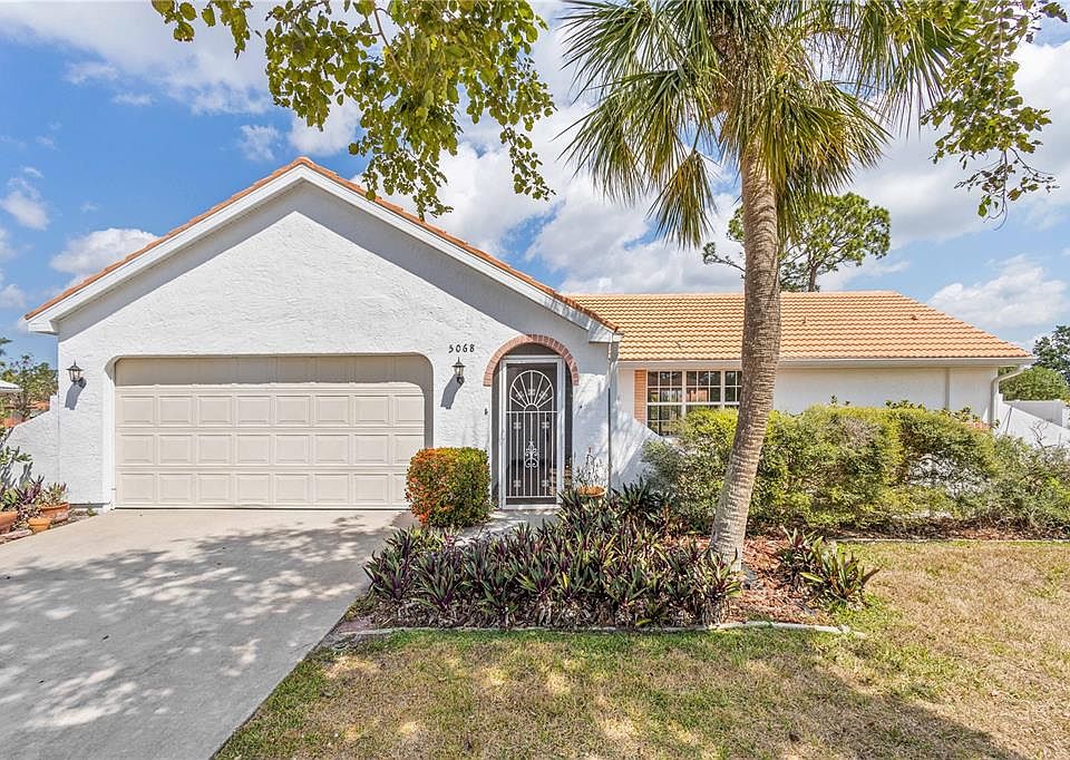 Welcome to your new home in beautiful North Port, Florida. This charming Mediterranean style home is "move-in" ready and waiting for your personal touch. It has great potential to become your Florida Dream Home! At almost 1,600 sq ft under air, the house features 3 bedrooms and 2 bathrooms with a split floorplan. The primary bedroom features an en-suite bathroom, on the opposite side your will find 2 bedrooms and 1 bathroom for more privacy. The house also has a living room, dining room, a family room and the kitchen with a newly installed stove. The yard is large at almost 1/2 acre, offering plenty of room for outdoor activities and entertaining, maybe a pool? A bit of landscaping will transform this backyard to a tropical oasis for relaxation and fun. The Mediterranean style of the home offers a front yard piazza style patio, for you to enjoy your morning coffee. The house is freshly painted and has new windows in all bedrooms, both bathrooms, the family room and kitchen. It is located in a desirable area of North Port Charlotte Country Club, where rarely a home becomes available for sale. The property is conveniently located near shopping, dining and entertainment, near the new Atlanta Braves Spring Training Stadium and Warm Mineral Springs Park. Very close to town but yet tucked away from all the traffic. Don't miss out on the opportunity to make this house your own! Bring your creativity and turn this diamond in the rough into a shining gem. Schedule your showing today. Sold As-Is. Tile roof in 2003, has plenty of life left.