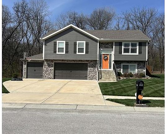 Meticulously maintained 4-bedroom split entry in the Gate Woods subdivision. Main living space boasts vaulted ceilings and a cozy fireplace in the living room and eat-in kitchen complete with granite countertops, walk-in pantry, and stainless-steel appliances. Walkout the sliding glass doors in the kitchen and enjoy your morning coffee on the screened-in covered deck or host a BBQ with family and friends on the newly extended deck with steps to the back yard. Retreat to your primary bedroom with a spacious ensuite bathroom with double vanity and walk-in closet. Two additional bedrooms, full bath and laundry room are conveniently located on the main level. Head downstairs to the second living room with wet bar that walkouts to the spacious backyard. 4th bedroom and bathroom are also located on the lower level. Oversized garage provides plenty of additional storage space and bonus exercise/media room. This property backs to mature tree line that gives the feeling of seclusion with full privacy fence. Close to downtown Riverside, downtown KC, shopping, entertainment, and walking trails.