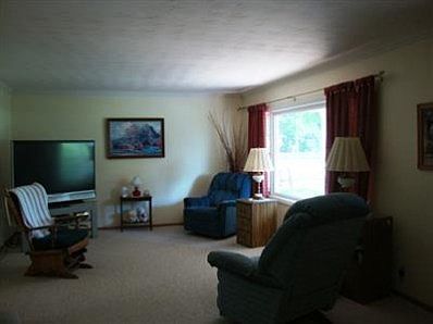 Very nice clean home & yes it is on a highway, but sitting way back off the road so you don't hear the traffic. New roof, carpet (over all hardwood floors), new metal storage building 18 x 21 plus pole barn. Furnace & AC-5 years old.