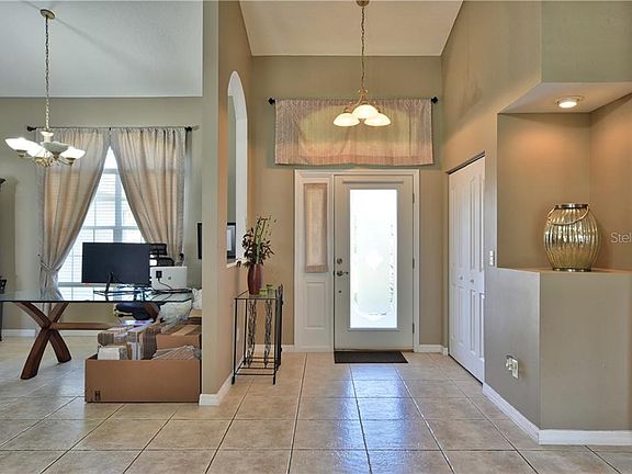 Amazing opportunity to own a former Marco Polo Homes model in the desirable SW community of Marco Polo II! This 3 Bedroom 2 Bathroom split plan home has room for everyone! Featuring a Formal Dining Room and Living Room, Family Room, large Kitchen with eat-in area, indoor Laundry Room and screened in covered porch - being at home will be made easier with all this room. The Formal Dining and Living Rooms are laid out in such a way as to provide flexible uses such as an office, home-schooling area, a place for the piano or a dedicated crafting space. The Kitchen overlooks a great Family Room, is spacious and features granite countertops, an island, long breakfast bar, stone backsplash and lots of cabinet and counter space. The Master Bedroom features sliding doors out to the screened porch and has a Master Bathroom with a jetted tub, walk in shower, double sinks, water closet, linen closet and large walk in closet. Guest wing has two bedrooms, bathroom with tub/shower combo and a linen closet for storage. Laundry Room has laundry tub and shelving. This home has many upgrades such as plant shelving, decorative built in shelving, an intercom system, coat closet in the Foyer, and a tray ceiling in Master Bedroom. Outside, you will find a fenced yard and an oversized screened in lanai. Marco Polo Village II is located by retail, restaurants and medical centers. There are a ton of outdoor recreational opportunities both nearby and within a 20 minute drive in all directions. Easy access to major roadways such as I-75 and SR 200. When you see it you will love it!