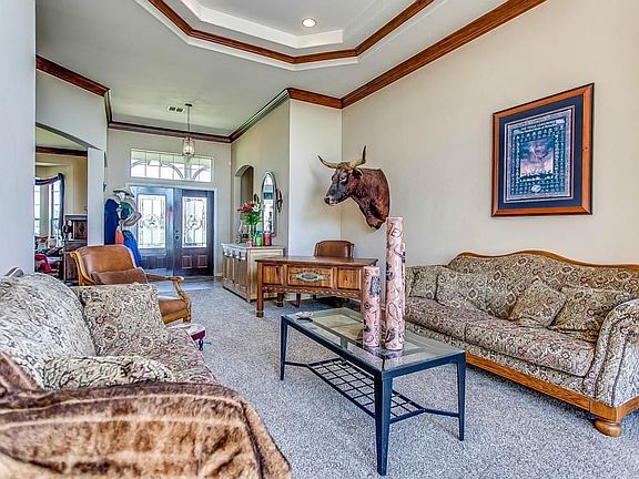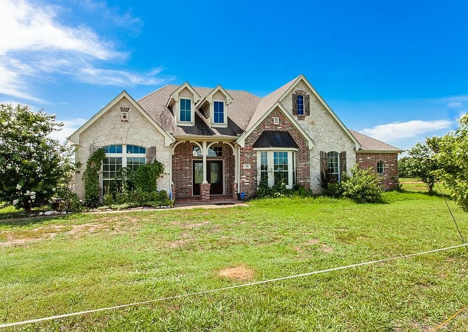 Gorgeous gated tree lined private road welcomes you to one of the Top 100 Recognized Ranches in North Texas-Tejas Longhorn Ranch. 158 majestic acres that includes a fish pond, 2 aero septic systems, T-shelter, 1500 sq ft barn with apt, mature woods and creeks so peaceful and private. Single story Custom five bedroom, three bath home with desirable split floor plan, sits on 66 piers, upgraded security and dual dtv. Easy commute to city, far away enough to enjoy the serenity.