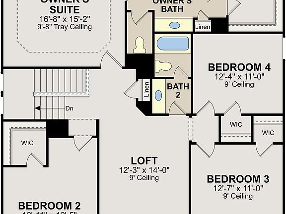 This gorgeous floorplan offers a flex space on the first floor with french doors that is perfect to use as a study or formal living room. There is also a full bath and laundry room on the first floor. The kitchen offers a breakfast nook, large granite island, upgraded 42-inch cabinets, tile backsplash and base cabinet waste basket. Other upgrades include hardwood stairs, a stacked stone fireplace in the family room and pre-wires for entertainment speakers. On the second floor, there is a loft as well as an optional 5th bathroom. The owner's suite features a tray ceiling and the large owner's bath with a frameless shower door. Also, this home features a 3rd floor retreat which is perfect for indoor entertainment and complete with its own bathroom. A full irrigation system and covered porch complete this unique home design.