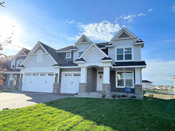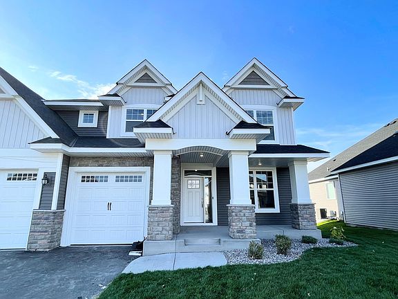 Cul de sac. Trails. Lookout basement. Gourmet kitchen. Soaking tub. Designer finishes. This is the Sinclair floorplan from the Discovery Collection. Gorgeous upgraded front exterior elevation! Awesome features throughout to include quartz countertops in kitchen and all bathrooms, Gourmet Kitchen w/ SS appliances, Luxury Vinyl Plank flooring throughout the foyer, family room, kitchen and dining room! Luxury Vinyl Tile in all bathrooms, mudroom and laundry room. Box vault in Owners' BR. Free-standing soaking tub in Owners' ensuite. All BRs w/walk-in closets. Second floor laundry & huge storage closet. Loaded with LED lights, smart home features & more. 3 car garage, fully sodded yard, irrigation and, landscaping are ALL included with this home! Highly ranked STMA school district. Walking distance to Fieldstone Elementary and STMA High School just beyond. Easy commute with I-94 just 5 minutes away.