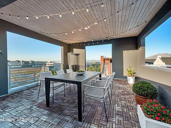 Modern living in the heart of Daybreak with a ROOFTOP DECK that takes it to the next level. This townhome features beautiful finishes throughout and offers bright open spaces that feels fresh and inviting. The ROOFTOP DECK gives you STUNNING VIEWS - perfect for relaxing, entertaining or enjoying Utah's sunsets. You're in one of the most walkable and amenity-rich communities in the valley, close to trails, parks, shops, dining and more. This is Daybreak living at its best.