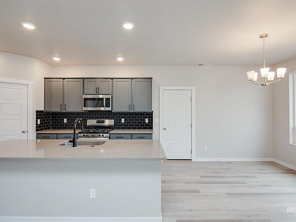 The Glenlake 2153 is the home for you! This home features our beautiful Warm Grey package including cove brushed nickel knobs and stainless steel appliances, including a gas range. The main floor is the perfect open space for any hosting or entertaining! Spill out to the covered patio and sit back and relax. Double vanity sinks in the master bath with a stand up shower and separate bathtub. Full kitchen backsplash, solid surface surface countertops in kitchen & master bath, walk in closets, crown molding on all upper cabinets, engineered vinyl plank flooring, and vaulted ceilings in the master bedroom. The home also includes a 3 car tandem garage. Photos are of actual home.