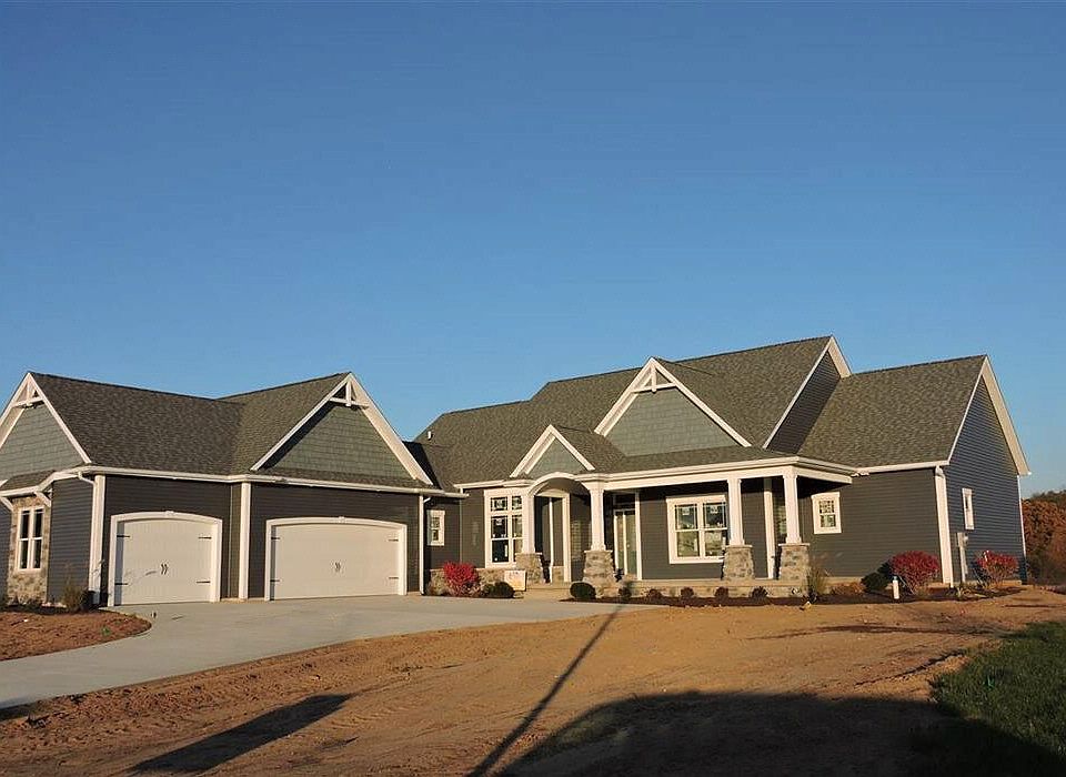Craftsman Style 4BR New Construction Ranch by Sequoia Homes -"Where Quality & Integrity Meet". Rare find in Granger:1.2 Acre w/ Panoramic views backs up to Cobus Creek. Open Concept 4BR w/ Split BR floor plan & Jack'n'Jill Bath. Showcase Kitchen: Maple Glazed Cabinets, Gallery Stainless Appliance, Granite Counters & Island, Dual Convection Ovens, Gas Cook top, Tile Backsplash & 3/4" Hardwood Floor. High Volume 10' & 11' tray ceiling in Great Rm, Cultured Stone Fireplace. Formal Dining Rm w/ high volume ceiling. Architectural Delight w/ Custom Mill Work 2-Tier Crown Molding, Archways, Tile & Hardwood, Solid Core Interior Doors. Finished Lower Level: Family Rm w/ Walk-Out Feature, 4th BR plus Flex Room/5th BR/Office, 9' ceilings, look-out windows & rough plumbed for 3rd Bath. High Efficiency HVAC. Stone, Vinyl & Shake Exterior. Desirable side load garage w/ large concrete apron. All measurements, taxes & school info not warranted.
