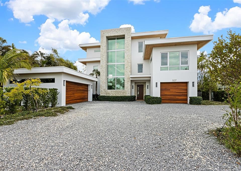 Rare opportunity to own an amazing Bimini Bay custom-designed organic modern home in Holmes Beach on Anna Maria Island! This 5 bedroom en suite bathroom home with 2 half baths was built in 2021 by Mason Martin Builders and only used twice a month by owners only. Completely furnished by Restoration Hardware including all of the beautiful lighting. Located on a quiet, cul de sac street in Holmes Beach in a 30 day minimum zone for renting. Featuring an open floor plan with vaulted ceilings and french oak engineered hardwood flooring throughout with gorgeous large format tile in each bathroom. The large chef’s kitchen has Wolf appliances, a 10 foot concrete waterfall island, and a bookmatched backsplash to the ceiling. The kitchen is open to the family room with floor to ceiling glass, a fireplace, wet bar, wine cooler and an ice maker. There is a large, walk in laundry room plus pantry right off the kitchen. There are two en suite bedrooms on the main floor and three en suite bedrooms on the second floor as well as a media room with a bar and beverage cooler. First and second floors have large balconies that overlook the bay. This gorgeous home also includes a 3 car garage, elevator, home gym, impact windows and doors and speakers inside and out. Your private backyard oasis on Bimini Bay has complete privacy without neighbors across the canal and endless views of the beautiful wildlife. Enjoy the oversized pool/spa and water features. The large outdoor living area was designed to entertain with a TV, outdoor dining, and multiple seating areas and a custom fire feature. For the boat lovers, there is a large Ipe wood dock, 10,000 lb. boat lift, a fish cleaning table, and an outdoor shower! Luxury, high end homes in this area don’t come around often, schedule your private showing today!