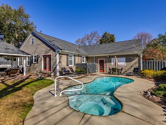 This immaculate 2-story unique home was built in 1951 by the owners of the local hardware store in Conway. Originally it was approximately 1,600 sq. feet. After a second story addition, a sunroom, and a multifunction room with kitchenette; the home is now 3,056 sq. feet. A salt water pool with adjoining hot tub and beautiful landscaping have been added to the backyard along with a 15 x 15 covered outdoor fireplace area for outdoor dining and entertaining. The home also boasts a 10 x 8 brick courtyard just off the sunroom. The eat-in kitchen has been completely renovated and designed with plenty of granite top counter space and storage with custom cabinets, stainless appliances, and an island with seating for cozy dinners. The den boosts a custom walnut entertainment center. Complete plumbing updates in 2011. In 2017 the house was completely repainted, the hardwood floors throughout were refinished, a queen size Murphy bed was added and a gorgeous master bath with custom tile design & vanity have been fully renovated. Though your neighborhood feels like a quiet getaway, your new home in just minutes to downtown, theatre, shopping, restaurants, schools & cafes, this home has numerous custom touches throughout. Sunlight fills the many rooms in this charming home with plenty of morning & afternoon light. Enjoy the beautiful and peaceful backyard setting while entertaining poolside for outdoor dining by the covered fireplace. This MUST SEE unique custom home located in a quiet neighborhood under the beautiful live Oak trees of downtown Conway is bike and golf - cart friendly with no HOA! Please call today to schedule a showing