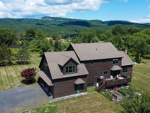 Enjoy magnificent mountain vistas and iconic Mohonk Tower views from your wide porch at this unique, converted winery estate on 2 acres of privacy that is minutes to Town of New Paltz and just steps away from the Mohonk Preserve and River to Ridge trails. The open floor plan with high ceilings throughout is ideal for modern living with a classic country home feel. The spectacular chef's kitchen features a Garland commercial-grade range and 2 Liebherr refrigerators and stainless steel cabinets. The perfect kitchen and the mature kitchen garden, with irrigation, mixes up a great recipe for hosting farm-to-table feasts. Dine al fresco on the new deck, with room for nearby pool (specifications available upon request). Embrace family and friends in the immense living area with stone fireplace, open to the dining room and kitchen making it easy to entertain. If you just want to read or watch movies you can hide away in the separate library. There is plenty of room for extended family and friends with 3 bedrooms plus office, 3.5 baths and a finished loft above the garage which has direct access through the house or back staircase from garage. Play in the rec-room style basement complete with ping pong, synthetic ice rink, and exercise studio. Store your mountain bikes and toys in the spacious over sized 3 car garage which enters the home into a large mud room with laundry room and 1/2 bath. Enjoy the fall foliage and gorgeous sunsets while roasting marshmallows at the outdoor fire pit. This special oasis is minutes from a wide range of activities including world-famous Shawangunk mountain climbing region, kayaking, wineries, hiking, farms, and multicultural downtown New Paltz and yet is less than 90 miles from NYC, making it ideal for full-time as well as weekend use.