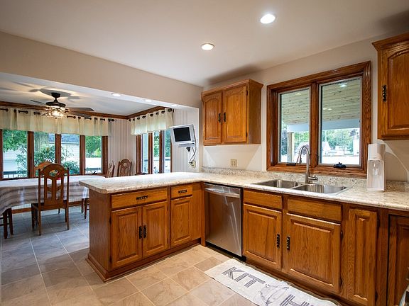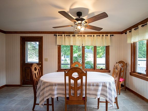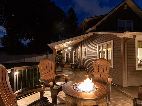 This home is stunning all day and night. The beautiful stone facade on the front of the home was a fantastic idea. Nicely landscaped and LOOK at the multi level composite deck that wraps around the entire side and to the back where the tongue and grove overhang keeps you out of the weather. There is plenty of room for sports or entertaining an entire wedding party in the fenced in backyard. Come on into the dining room off the deck and see the brand new counters and open kitchen. You can still watch what is going on outside through all the new windows. There is a living room/den through the kichen door for the person that wants to read or study with out being in large family room. Speaking of family room, this is the warmest place in the home during the winter if you throw some wood in the insert. Nice and Cozy! One of the two full baths rounds of the first floor. Up the steps to the spacious bedrooms and lounge area. This home is well loved and taken care of.