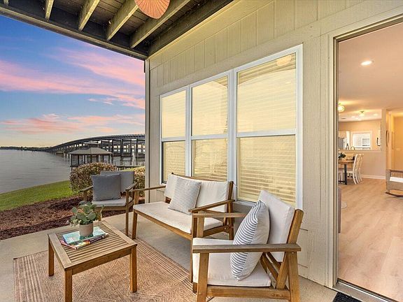 Welcome to your serene escape on the waters of Lake Marion--an exceptional ground floor condo offering both comfort and breathtaking views. This furnished two-bedroom, two-bathroom residence is thoughtfully designed with an open floor plan, ensuring you enjoy seamless living areas that connect you with the beauty of your surroundings. The interior space with a soft color palette is inviting, and large windows flood the space with natural light, further enhancing the airy, open feel of the condo. The living area offers expansive views of the lake, creating a perfect backdrop for relaxing evenings. The kitchen is a modern delight, equipped with fresh white cabinetry, gold handles, and stainless-steel appliances. Its bright, clean design is highlighted by elegant fixtures and amplecountertop space, making meal preparation a pleasure. Stepping outside, you'll find a picturesque patio, perfect for morning coffee or evening relaxation. This outdoor space leads to a well-maintained lawn that gently slopes towards a boardwalk and the serene waters of Lake Marion. Whether it's for a quiet retreat or an active lifestyle, the amenities here cater to all preferences. Enjoy the community pool, ideal for refreshing swims and social gatherings. The dock and boat ramp offer direct access to lake adventures perfect for boating enthusiasts or those who simply love to be near the water. Located in the charming area of Santee, this property is perfectly positioned for those who seek convenient access to some of South Carolina's best destinations. Just a short drive away, you can explore Historic Charleston, vibrant Columbia, and the sandy shores of Myrtle Beach. This makes Santee an ideal spot for anyone who appreciates day trips and the variety of landscapes and experiences that the state offers. The ideal buyer for this property is someone who values the tranquility of lakeside living while benefiting from a low-maintenance lifestyle. Whether you're looking to make this your permanent home or a weekend retreat, the convenience and beauty of this condo make it an outstanding choice. And with the open floor plan and stunning views, you'll have a space that's both welcoming and ready for personalization. Disclaimer: The ability to operate a short-term rental in this jurisdiction is subject to local laws and regulations, which may change over time. There is no guarantee that the current permissions or allowances for short-term rentals will remain in effect in the future. Prospective buyers are encouraged to conduct their own due diligence regarding the current and future status of short-term rental regulations.