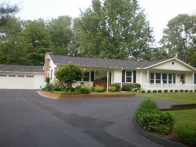 One floor living at its best! Open floor plan for today's lifestyle. This 3 bedroom, 2 full bath home has 20' great room with brick fireplace, lots of bookcases and display cabinetry. Glass doors open to brick patio, gardens and 1= acre of rolling lawn and mature trees. Open to the newer kitchen with informal dining bar and island. Sun room with walls of glass overlooks gardens. Banquet size dining room with room for informal living. Beautiful private property, a gardeners delight. Two car garage plus 20x12 storage building.