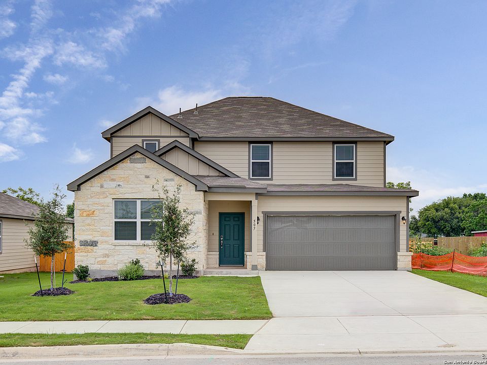 "The Angelina floor plan is a beautiful 2-story home that offers ample living space to suit any lifestyle. The main floor boasts a versatile separate study at the front of the home, in addition to an open-concept great room and dining areas flowing into an inviting kitchen with a center island and generously sized walk-in pantry. You'll also enjoy easy access to storage under the stairs and as well as a full third bathroom and fourth bedroom on the first floor. Upstairs you'll find an open game room along with the laundry room and remaining bedrooms. The spacious primary suite offers a private bathroom with dual sinks at the vanity, a linen closet, walk-in shower, private water closet and a spacious walk-in closet. Additional home highlights and upgrades: 42"" white kitchen cabinets, quartz countertops and tile backsplash. Stainless-steel appliances. Additional recessed can lighting in great room and game room and primary bath. Soft water loop upgrade. Separate garden tub and shower. Sprinkler system with landscape package. 2"" blinds throughout home. Exceptional included features, such as our Century Home Connect smart home package and more!