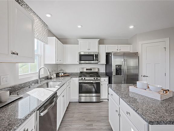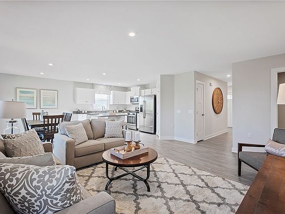 Enjoy convenient 1ST FLOOR living in this 3-bedroom, 2-bath "Grand Bahama" ranch. Open, airy space combines kitchen, dining area & great room to create a casual comfortable flow to the home. Eat-in kitchen features island, quartz tops, s/s appliances (w/ refrigerator), white cabinets, electric range & pantry. Walk-in Roman shower w/ bench & ceramic-surround tile highlight the luxury owner's bath. Hardwood, tile & carpet flooring throughout home. Special lifestyle features: 36" wide doorways, lowered light switches, raised outlets & comfort height toilets. WiFi enabled garage door opener & NEST thermostat, too.