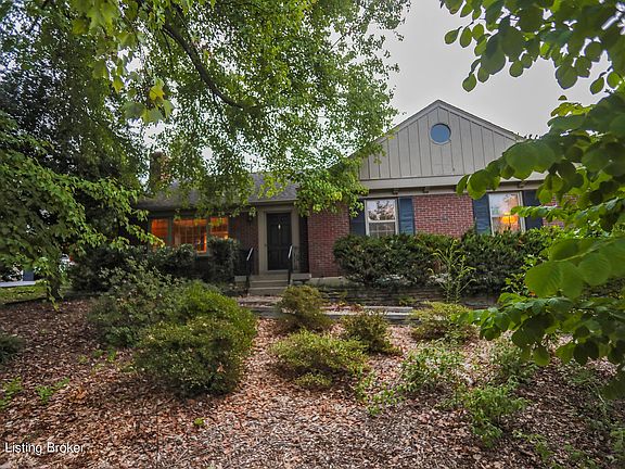 Convenient and quiet neighborhood of Windy Hills. Spacious ranch home with tree lover's front yard and rustic front walk made of natural materials. The native limestone, the classic rail fence, and the vintage outdoor light fixtures add a touch of Kentucky charm. Sprawling back yard with large storage outbuilding and trees for a private outdoor space. Original kitchen and full baths. Original hardwoods, some under carpet. Sizeable bedrooms, Primary Bedroom with full bath. Large or double closets in each bedroom. Potential for possible expansion into the windowed attic. Nice sized main floor living room with fireplace and adjacent dining room, second living space with fireplace in lower level. Lots of storage. One side of two car garage was converted into workshop and could easily be converted back. Nice, covered porch off dining room. Driveway with easy parking for multiple cars. Close to major roads and expressways. HVAC replaced in 2022 and Exterior paint in 2024. Some deferred maintenance.