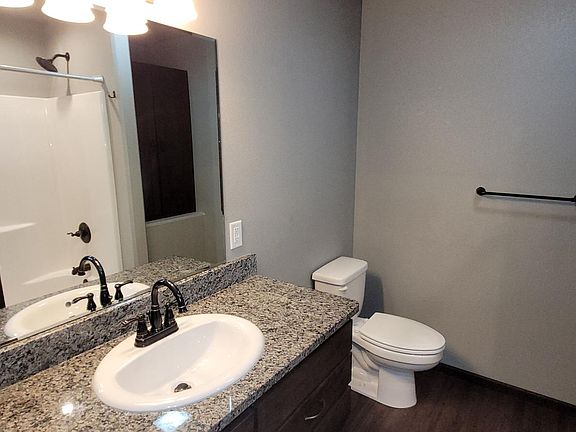 Beautiful 4BR, 3BA, home near Ellsworth AFB. It features an open floor plan with vaulted ceilings, corner pantry, lots of counter space with granite countertops, built-ins, and soft close cabinetry. There's a center island with under-mount sink, stainless appliances, and gas stove. Off the dining room area, the sliding glass door leads out to a large deck with gas grill hookup, and a privacy fenced back yard. By the way, did we mention the large (finished) three stall garage? Get this one locked down today.