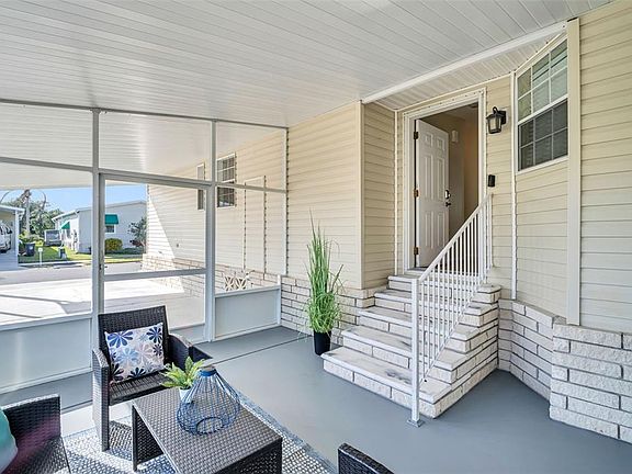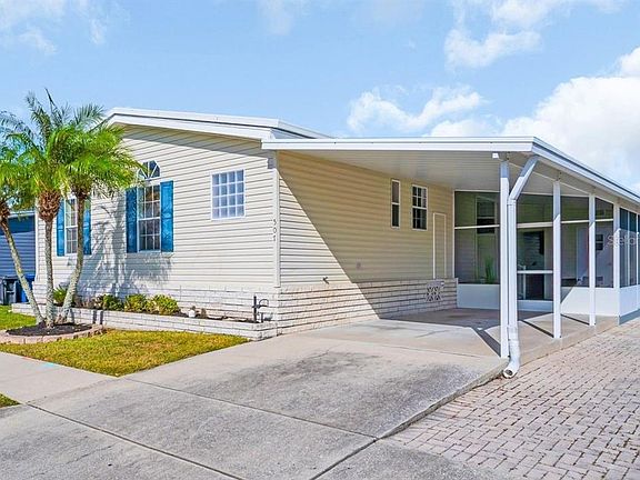 This charming and spacious 3-bedroom, 2-bath residence is nestled within a 55+ community. Residents benefit from a modest $60 per month Homeowners Association (HOA) fee, ensuring affordability while enjoying a range of community amenities. INTERIOR FEATURES: The inviting home features a generously sized master bedroom, perfectly accommodating a king-sized bed. The living room is enhanced by a tray ceiling and crown molding, adding a touch of elegance, and numerous windows fill the space with abundant natural sunlight The separate dining area has an open view of the pond. The updated kitchen is designed with an island, wood cabinets, a pantry, and granite countertops, catering to both style and functionality. Laminate flooring runs throughout the residence, offering durability and a cohesive appearance. The inside laundry room is equipped with a built-in desk area, providing both convenience and a functional workspace. Additionally, a versatile bonus room offers flexibility for various uses. It would be perfect for visiting family/friends or a private home office. SCREENED OUTDOOR SPACES: The home features two distinct screened areas designed to enhance outdoor living and relaxation. At the front entrance, there is a spacious lanai with a screened enclosure and pull-down shades, providing both privacy and comfort. Adjacent to this area is a large storage space, offering a convenient area for belongings and seasonal items. At the rear of the home, a screened lanai and paved patio overlook a tranquil pond. This serene setting creates the perfect environment for peaceful relaxation and enjoying the calming views of the water. COMMUNITY AMENITIES: Residents have access to a sparkling pool and spa, a vibrant clubhouse, library and classic shuffleboard courts. These amenities foster a sense of comfort and leisurely elegance within the community. The community welcomes golf carts, making it easy to navigate and enjoy all that the neighborhood has to offer. LOCATION: Conveniently located within walking distance to a shopping mall, AMC theater, and multiple restaurants, this home offers easy access to local amenities. It is situated midway between Honeymoon Island, Caladesi State Park, the Gulf beaches and the Tampa International Airport, providing residents with both recreational opportunities and travel convenience. THE PARTICULARS: This Jacobsen model modular home was manufactured in 2002. The lot is individually owned by the buyer. The heated sqft is 1500 with a new AC Unit in 2021. Total sqft is 2496!!- Roof is doubled roofed with a metal over roof. One pet is allowed.