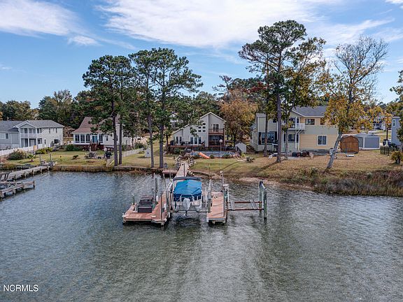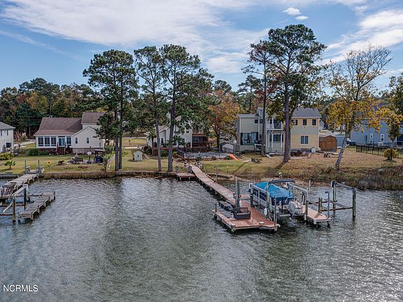 Looking for waterfront living in Sneads Ferry? Here's your chance! Located in the Chadwick Shores subdivision, this 3 bedroom, 2 1/2 bath home is situated on just over a half acre on Fullard Creek with deep water access, allowing easy navigation for large boats. The well maintained dock has 5K and 10K lb boat lifts and a jet ski lift. Fueling up is convenient at New River Marina, just a mile away with immediate access to the ICWW and minutes to the ocean via New River Inlet. Prefer a pool day? No problem! Surrounded with trex decking, the above ground pool serves as the perfect spot for soaking in the summer sun! Step inside and notice the vaulted ceilings and abundance of natural light with water views from almost every room! The kitchen is perfect for entertaining with a large island and has been upgraded with granite counter tops, stainless steel appliances and cabinets complete with crown molding. The master bedroom features an ensuite bathroom with dual vanities and separate tub and shower as well as a private access to the screened in porch! The first floor also includes a half bath and double sided gas fireplace, perfect for those cooler Carolina fall nights! Upstairs you will find two more bedrooms and a full bathroom. The bedroom facing the back of the home has its own private deck! Chadwick Shores is a gated community with a playground and picnic area, and community fishing dock. Schedule your showing and fall in love!