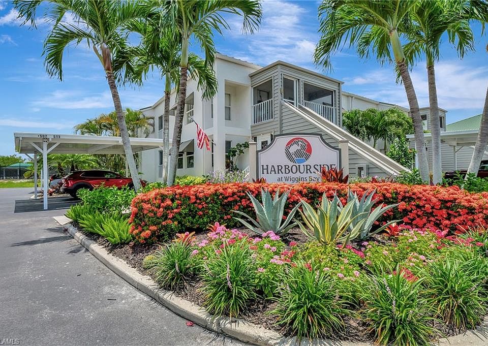 This meticulous kept Condo is located in The Wiggins Bay community, ready to move in!. The entry has a small sitting area & exterior storage. Loads of windows all with plantation shutters. Love tennis, its steps away to the courts. The updated kitchen features, breakfast bar, Decor tile backsplash, newer stainless appliances, a coffee bar & beverage cooler add an accent to finish it off. The floor plan allows for many options: Room for office or small den, the lanai has been enclosed for more under air living, with impact glass sliders. Updated baths with glass shower enclosures, modern laundry with added cabinetry. Both bedrooms have walk-in closets. A/C 2019 & water heater 2020. The Harbourside community has a pool and hot tub surrounded by lush landscaping & pond. The Tarpon Cove Yacht & Racquet Club is private with memberships available to join. Ask about a day pass to check it out and enjoy lunch. Fitness, tennis, bocce, pool and boat taxi to beach are a few of the amenities.