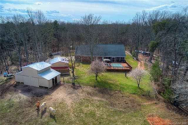 Bring your horses and pets. 8.5 acres minutes from Gardner Webb University, Shelby, Gaffney and easy riding distance to the Broad River Greenway Trail System. Tucked down the winding private driveway is the beautiful brick home with 3 bedrooms 2 full baths, office and bonus rooms. Open floor plan between kitchen and den with fireplaces, screened porch, hardwood flooring and tray ceiling. Master suite on main level has private door to screened in porch, walk in closet, tray ceiling, whirlpool tub and dual vanities. Second floor has a bedroom and extra bonus room. Above ground salt water heated pool is surrounded by lighted decking and a pergola. This property offers a 3 car attached garage, 3 stall barn with tack room and loft, covered tractor/storage sheds and an amazing 2 bay car shop with loft storage also. 2.5 acres in pasture and trail circling the perimeter. This property has it all and is a must see.