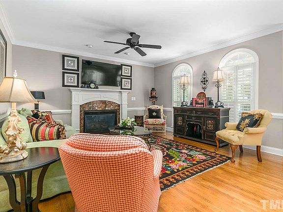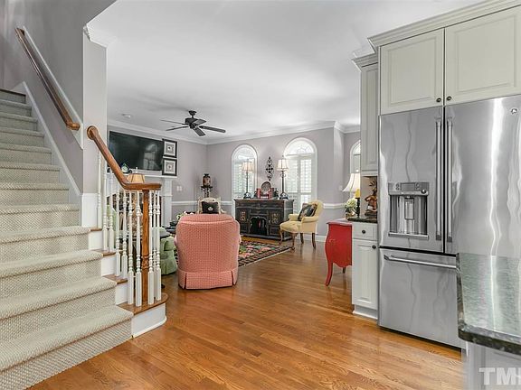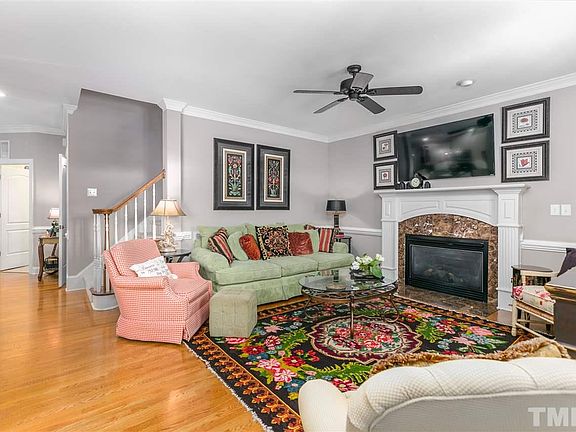 Charming Charleston Home with First Floor Master Suite Located In Popular Carpenter Village. Meticulously Maintained. Stunning Custom Kitchen with Gas Range. Large Secondary Bedrooms and Loft. Two Large Front Porches and a Side Screened Porch. Beautiful Master Retreat with Updated Bath and Huge Walk-In Closet. Walk to Community Pool, Tennis Courts and Volleyball Courts. Fantastic location close to the Airport, RTP and Shopping. Best Schools in the Area