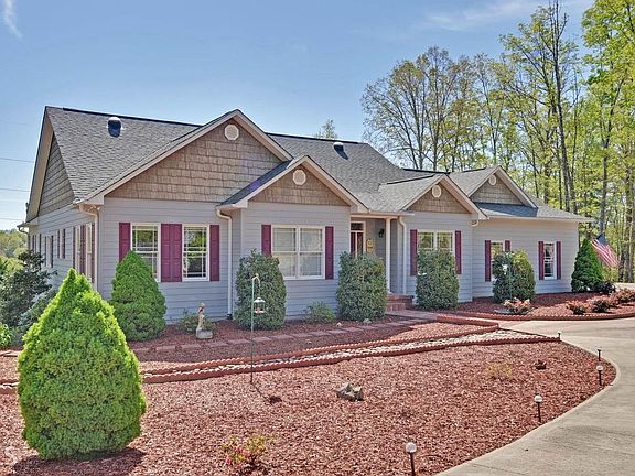 Mountain Elegance and Charm. Almost 5000 sq ft under roof. 4BR/3BA One level Living w/ Handicap access. This home has a beautiful open floor plan featuring a Cathedral Great room, gas log fplc, ceiling w/ ship-lap look. Formal DR, Hardwood floors throughout the main floor, 9ft ceilings in Bedrooms, Crown w/ dentil moldings, baseboards, master w/ jetted tub and closet shelf system, Gorgeous sunroom off of Great room taking in the view, Generous kitchen with pullouts in the custom Thomasville cabinets and lots of storage. Many closets with no wasted space, mudroom, Den w/ game closets, workshop, 4th br has no closet. Paver patio in the garden. 3 Car garage w/ Huge concrete parking area. Roses, Roses, Roses. Solar tubes add natural light.