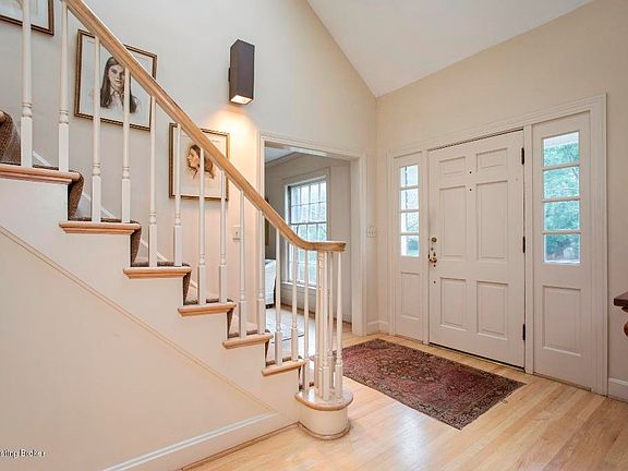 This cape cod is waiting for a new family to adapt it to their needs. The gracious front hall is 2 stories tall with skylights. There is a large first floor master bedroom addition with high ceilings and a door to the deck outside. There is another 1st floor bedroom that is currently used as an office. The large living room with fireplace and built in bookcases opens into a dining room that could seat 12. It opens into a den addition with a second fireplace and more built-in bookcases. The second floor has two nice size bedrooms, big enough to easily accommodate twin beds. There is a total of 3 full baths.