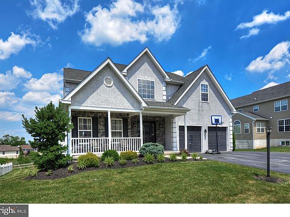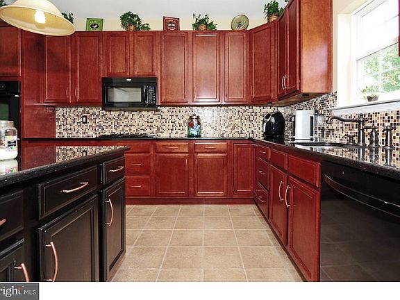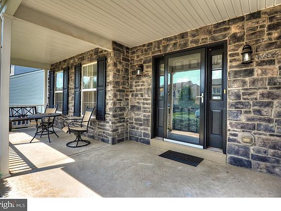 Finished Daylight Walk-out Basement, Beautiful Granite Kitchen, Open Floor Plan! Five bedroom colonial with open floor plan that backs to natural space. Covered front porch and welcoming foyer with hardwood flooring which carries through to cozy living room, dining room with bow extension, and two-story family room with gas fireplace. The upgraded kitchen has laminate flooring, expansive island, granite counters with tile backsplash, double ovens, gas cooktop, built-in microwave, and brand new dishwasher; eating area with sliders to deck overlooking yard and natural common area. Additional room off of main living space could be office or fifth bedroom as it has a closet, and wood floors, recessed lighting. Second level has all new carpet, and consists of three spacious bedrooms and a master suite with sitting area, walk-in closet, and bath with double vanity, linen closet, shower, and corner sunken tub. The finished basement adds another 1,000+ square feet of living space and has daylight walk-out to grade and full size window, along with plenty of room for additional storage in the utility area. So many upgrades, a beautiful place to call home! Seller offering credit for carpet replacement in basement!