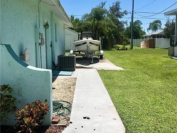Check out the beautiful curb appeal! 2 Bedroom 2 Bathroom 1 Car Garage block home. This well maintained home features split floor plan, tile in the wet areas, linoleum in the main areas, interior laundry room, and large air conditioned enclosed lanai that can be used as a family room, bedroom or bonus room. The exterior of the house features mature landscaping with curbing, concrete sidewalk around the entire house, extra parking pad and a large shed that has been pre wired for electricity. Home has new hot water heater and new A/C. Home is conveniently located minutes away from shopping, dinning, entertainment, schools, public parks, public boat boat ramps, major medical and more!