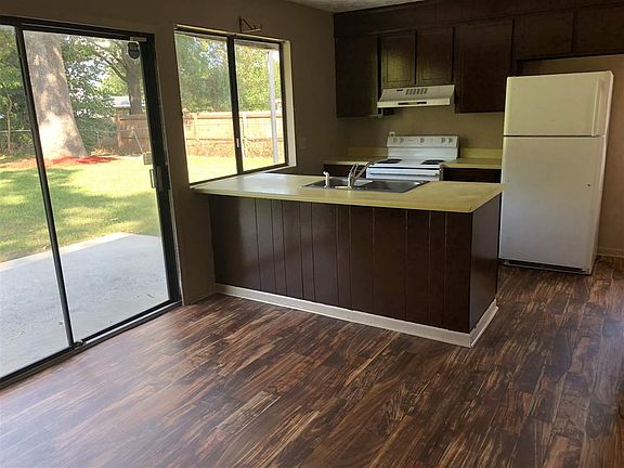 Cute 4 bedroom home with large, level backyard perfect for family barbeques. Kitchen provides great view of the backyard and patio. Lengthy covered front porch can seat several chairs. Built-in storage room on side of house near driveway is perfect for lawn mower and yard tools. Master bedroom has a private one-half bath. Inside laundry area is located off kitchen. Convenient area is close to restaurants and shopping.