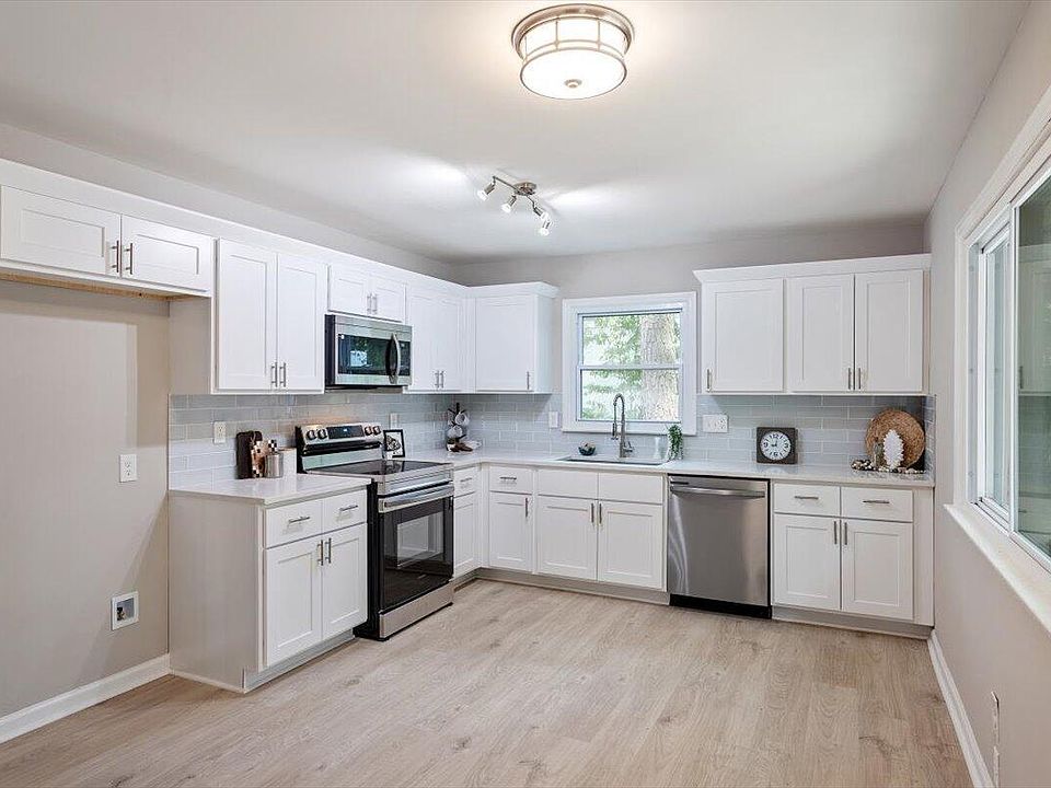 Adorable Ranch in Fantastic Garner location on .3 acre lot with upgrades galore! Bright open floorplan features custom kitchen with granite countertops, tile backsplash and stainless steel appliances. Wide plank laminate hardwood flooring throughout main living areas; PLUS bedroom carpet and new interior/exterior paint. Huge yard. Convenient to Downtown Raleigh, highways, and White Oak. Move in and Enjoy. Staged photos for illustration only, to show homes potential.