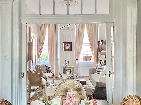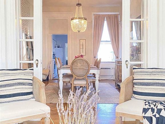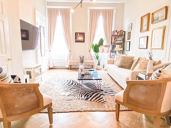 Rare opportunity to live in a beautiful brownstone in the heart of Hoboken on the very desirable Garden Street. Won't last long. This beautiful sun-drenched, two bedroom condo has original moldings, inlaid flooring, exposed brick, beautiful pocket doors, stunning ceiling medallions and gorgeous light fixtures. This unit is located on the sought after parlor floor of the building, providing incredible 11ft ceilings and sound reduction between the other apartments. The current owners updated the kitchen with brand new appliances, beautiful subway tiles and gorgeous carrera marble style quartz countertops. It is set up as a galley kitchen, providing counters on both sides, giving the tenant a large amount of space to cook and prepare wonderful meals, a feature that is extremely rare in Hoboken and NYC. The white tile bathroom has a beautiful light fixture, new shower head (with great water pressure), modern glass shower door, and a beautiful marble vanity. Right outside the apartment is the beautiful Church Square Park, which has basketball courts, a small and large dog park, and is a great place to picnic on weekends. During the spring, Hoboken's farmers market is right outside the building every Tuesday. Papersource, Anthropologie, Aspen Market, Starbucks, and Sephora, as well as many other shops and restaurants are all around the corner on Washington St. The brownstone is just a short distance from the beautiful hoboken waterfront, the PATH train, and bus station, and is a quick trip to NYC (just one stop from the West Village). The apartment has several possible configurations in terms of set up to accommodate different tenants needs.The current living room can be used as a very large master bedroom, and dining room as the living area.