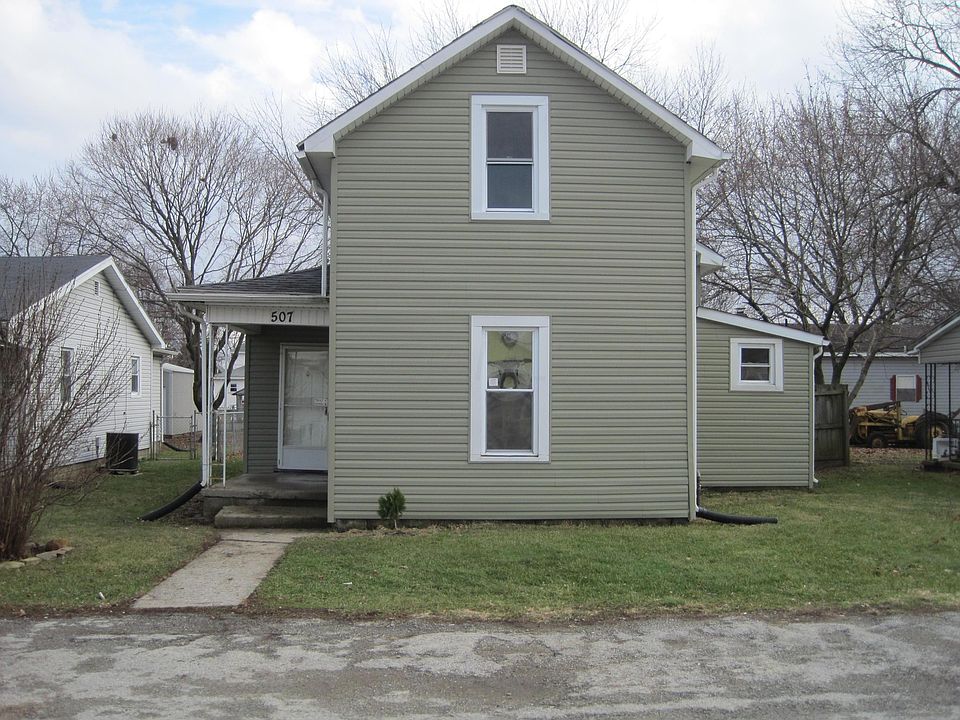 **This property is going up for auction on June 6, 2017 through June 9, 2017. Go to auction.com.** 1.5 Story home with 2 bedrooms up, 1 down. Nice sized living room, full kitchen w/ eat in, newer stainless steel sink and counter tops. Built in wall fire place. Newer siding, good roof, natural gas forced air furnace,newer 100 amp panel box, nice back yard w/ covered patio, over sized 1 car detached garage with concrete floors, workshop and wiring. This home has an incredible amount of potential.