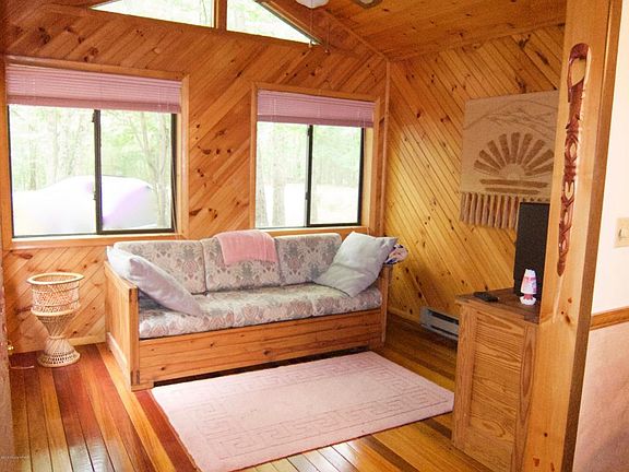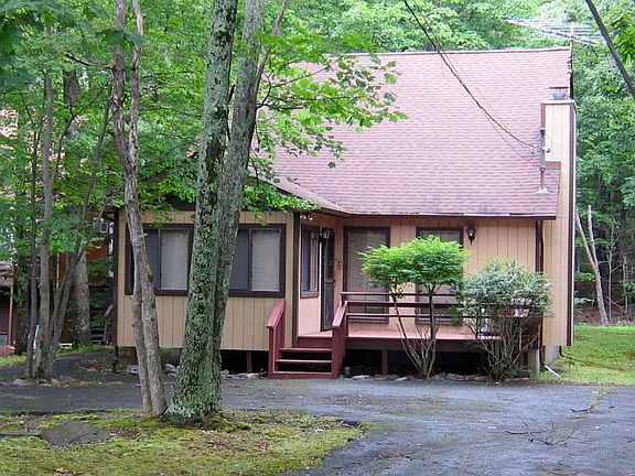 Enjoy a full acre of pristine woodland retreat as charming as can be! Cozy with enough space for everyone to enjoy. Beautiful deck for barbeques and lots of privacy. Home is used only as a vacation home and is in excellent condition. Very spacious, comfortable and lovely. The home boasts a circular driveway, a stone faced fireplace, a gorgeous sitting room, and a separate mud/laundry room. Located in a desirable 4 season community complete with private pools, clubhouse and playground. A fantastic deal, easy to show. Lots of room Pack your bag and come up to the mountains!
