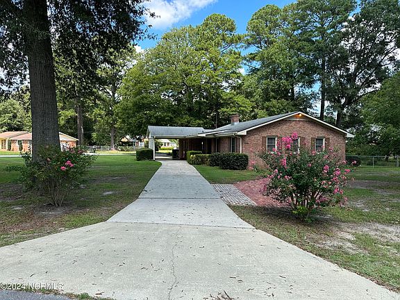 Gorgeous Corner Lot Ranch located in the Oak Forest subdivision. This Well-Kept 4 Bedroom, 2.5 Bath Home features STUNNING Refinished Hardwood floors, a Large Den w/New Carpet, Family room with a Cozy Wood Stove and built-ins. A Spacious Kitchen w/all 4 appliances and Tile Backsplash. A large Master Suite w/Hardwoods, Master bath, single vanity and Tile floor in the Shower/tub. Three additional Bedrooms ALL WITH Gorgeous Refinished Hardwood Floors and Fans. Fresh Paint in all 4 Bedrooms and the Den. The HUGE 22 X 34 ft Detached Wired Garage is the perfect Workshop w/Gas heat. Also has an external Plug for your Generator, which could generate power for the whole house during lose of power. Air compressor and High Pressure hose conveys. There's an extra parking pad for extra vehicles and a separate Storage room beside the Garage that has AC. The Attic is floored for all your storage needs. You'll enjoy this Picturesque Corner lot, the Fully Fenced-in Backyard and the mature trees to include Apple, Pecan, Fig and Persimmon trees. Convenient to SJAFB, Hwy 70 and all local amenities.