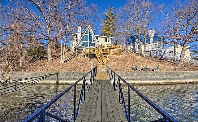 Welcome to the Waterfront Chalet of Lake Ozark. Sitting in a beautiful neighborhood near many attractions this home makes a great private residence or high performing short-term rental. This beautifully updated home offers the perfect blend of modern design, comfort, and breathtaking lake views. Nestled in a cove with main channel views, this home is ideal for someone wanting the best of both worlds. Featuring 3 spacious bedrooms and 2.5 bathrooms, this home boasts well over 2100 sq. ft. of stylish living space. Every detail has been thoughtfully designed, from the open-concept living area filled with natural light to the sleek finishes throughout.
