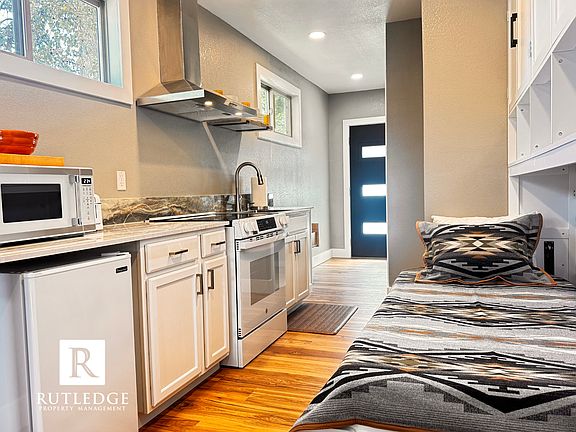 Welcome to this charming 1-bedroom, 1-bathroom ADU located in the vibrant city of Medford, OR. This property comes fully furnished, offering a comfortable and stylish living space. The kitchen is well-equipped with essentials including a refrigerator, microwave, and range, making meal preparation a breeze. The home also features a range hood, ensuring a well-ventilated cooking space. For your convenience, the owner covers sewer costs and provides private parking. This home is also a short-term rental, perfect for those seeking a temporary residence without compromising on comfort and amenities. Additional conveniences include provided linens, towels, twin bed with bedding for 1 person, ensuring you have everything you need for a comfortable stay. The property also supports eco-friendly living with recycling services and includes trash services for a hassle-free living experience. Experience the ease and comfort of this well-appointed home in Medford, OR.
