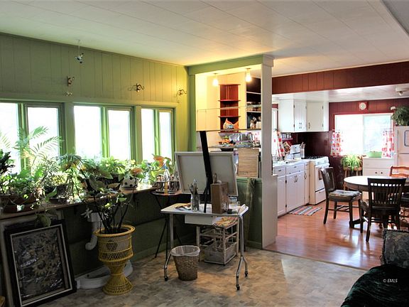 This colorful 2+ bedroom, 1 bath de-titled mobile home is on a permanent foundation and a 7,500 sq. ft. lot. The 3rd bedroom was opened up, but could be enclosed again. There is an attached screened-in patio that can access a workshop area that has a wood-burning stove. The backyard could be a garden, play area, extra parking, or the perfect place for a garage. The existing shed has a lean-to covering off the back.