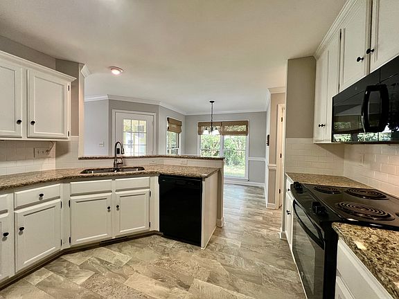 - Exterior features: Granite countertops, Heating system: Forced Air, Walk In Closet, built ins, oversized driveway, plantation shutters, storage shed